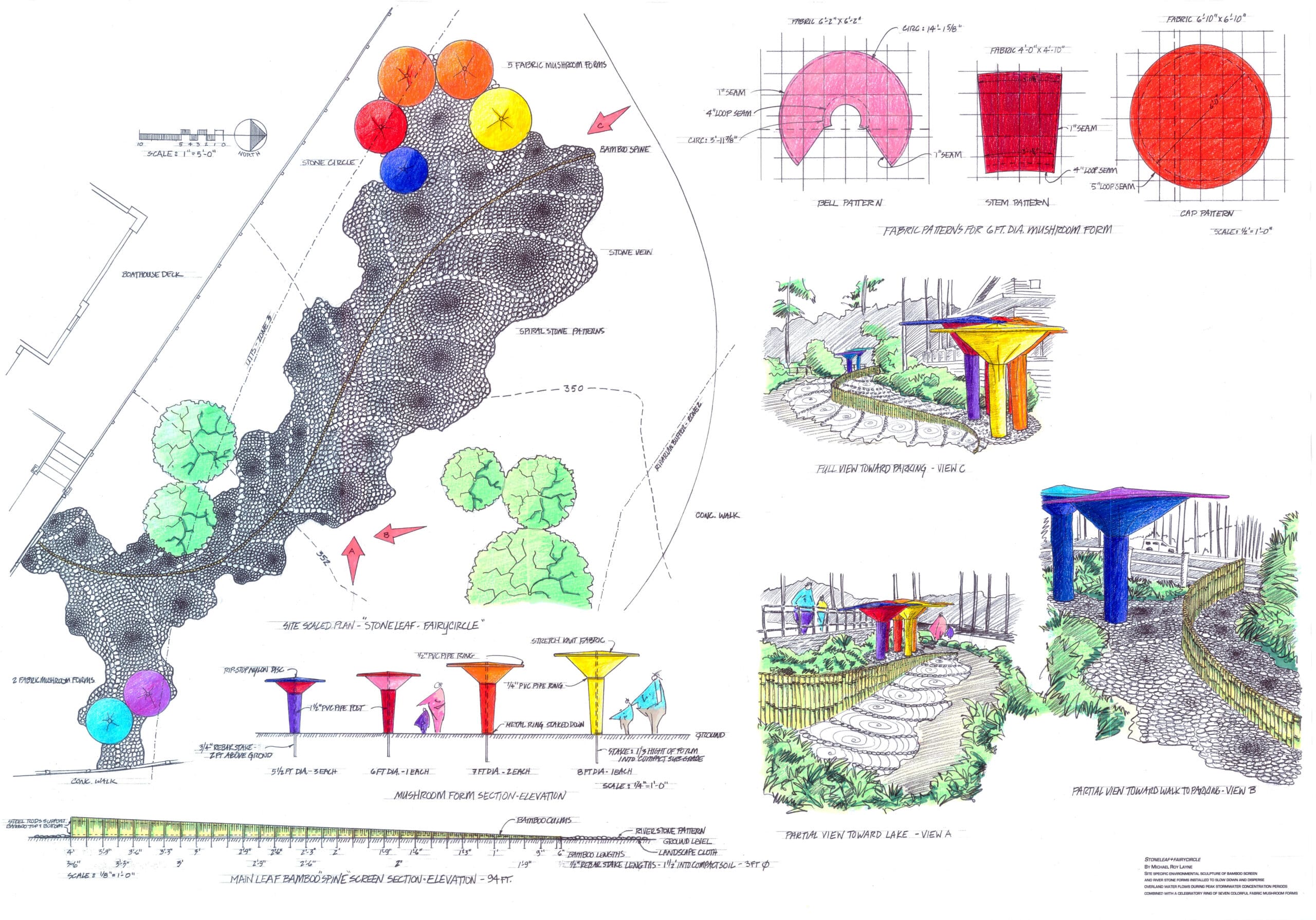 "My sculptural environments are aesthetically pleasing site-specific artworks that connect nature and culture by employing the three legacies for regenerative and sustainable design of (1) environment: natural systems, (2) education: experiential systems, and (3) engagement: cultural systems. By using a variety of art media and fabrication methods to create sculptural open spaces that are intended to support personal rejuvenation and inspiration, my sculptures provide venues for environmental learning and community celebration.”